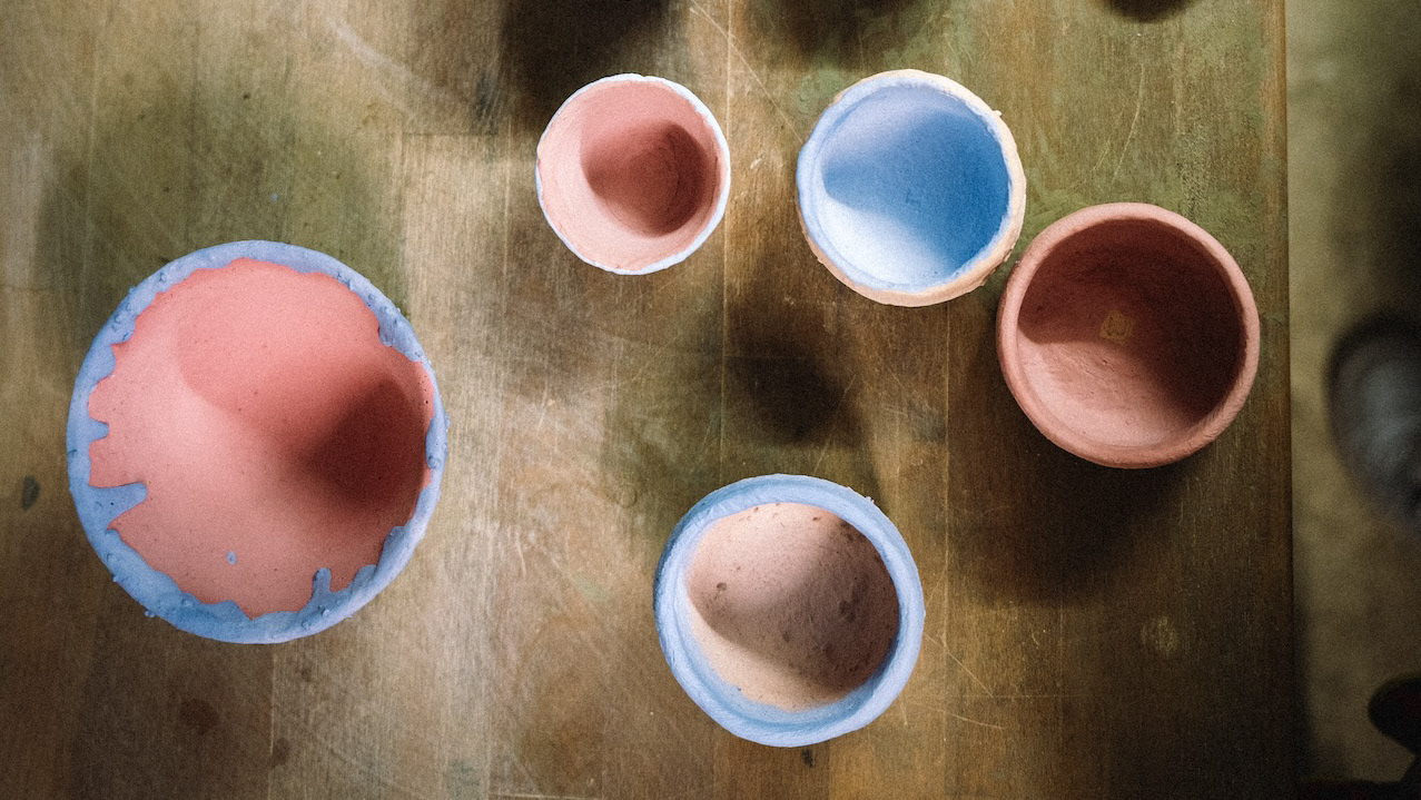happines is making your first pot in a pottery wheel.